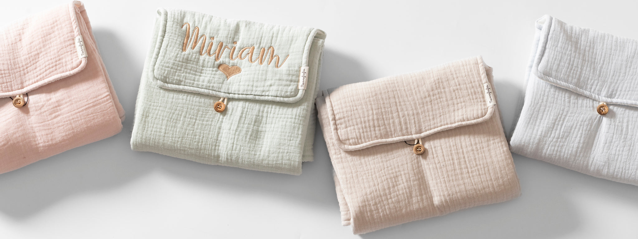 Ogni accessorio è Made in Italy e curato nei minimi dettagli, per offrire soluzioni pratiche ai genitori e una coccola sicura ai bambini. Molti articoli sono personalizzabili con ricamo, per trasformare un oggetto quotidiano in un ricordo speciale.